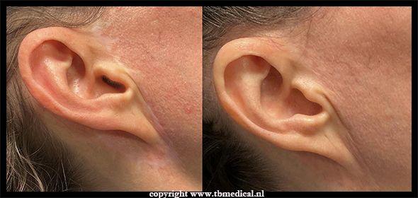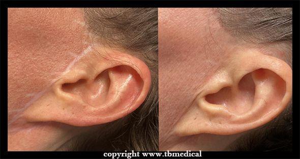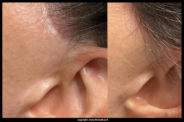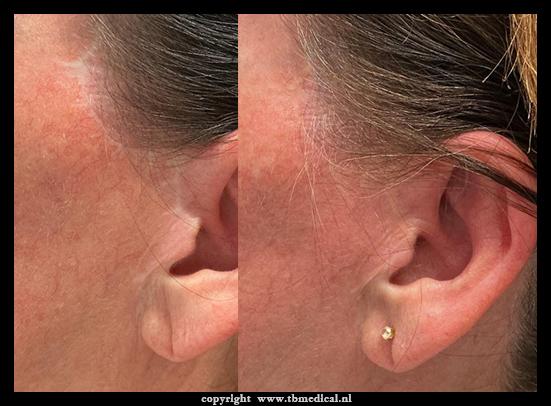 - Littekens voor of achter het oor na een facelift