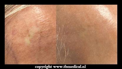 Let op: direct na de behandeling lijkt de kleur intenser, maar dit vervaagt tijdens het genezen. Dit hoort bij het proces en wordt meegenomen in het behandelplan.