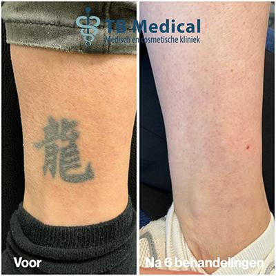 Bekijk onze voor en na resultaten om zelf te zien hoe effectief onze tattoo-verwijderingsbehandelingen zijn. Dankzij onze expertise en hoogwaardige apparatuur bieden we u een veilige, efficiënte oplossing voor het verwijderen van ongewenste tatoeages, met blijvend resultaat. Kies voor TB Medical voor de beste tattoo verwijdering in Nederland.