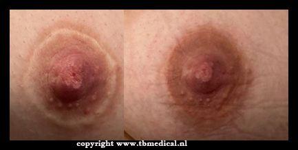 Rond de tepel kunnen na een borstlift witte randen of kleurverschillen ontstaan. Dit komt doordat het pigment in de tepelhof soms (deels) verdwijnt, waardoor het meer op de huidskleur lijkt. In sommige gevallen is het verschil tussen de borst en het tepelhof daardoor minder zichtbaar.